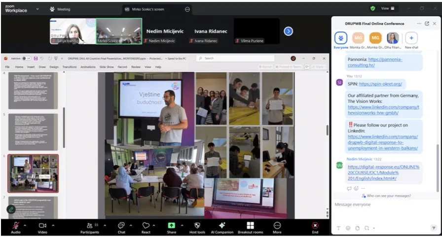 On 20 November 2025, the Digital Response to Unemployment Problems in the Western Balkans (DRUPWB) project marked a major milestone with its Final Online Conference, bringing together stakeholders from across Europe and the Western Balkans. The event served as a culmination of collaborative efforts, offering a comprehensive overview of how innovative vocational education and training (VET) approaches can respond to evolving labour market demands.