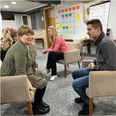 The German training followed a Train-the-Trainer model, equipping participants not only with the curriculum content but with the skills and methodologies to effectively deliver it to their own learners. OMK was in direct contact with participants before the event, allowing sessions to be refined to match specific learning gaps. The programme covered self-employment and business setup in Germany — including legal structures and financial considerations — digital branding and marketing using tools such as Canva, no-code programming, AI tools including ChatGPT, networking and career strategies, and business pitching. Gamified learning methods, including podcast creation and interactive challenges, were embedded throughout. Results were strong: 100% of participants reported satisfaction with what they had learned, and 95% expressed interest in furthering this training with their own learners, particularly in digital marketing for new founders.